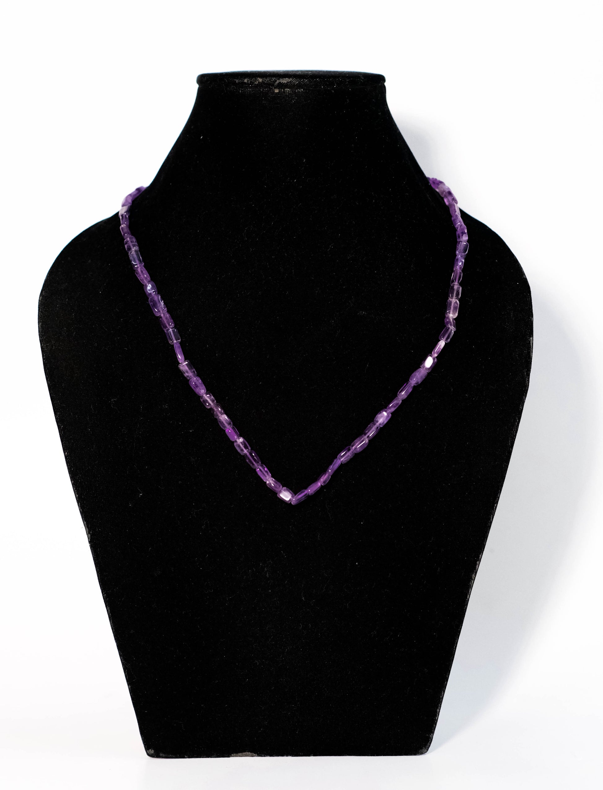 Amethyst necklaces are celebrated for their calming effects, aiding in stress relief, promoting emotional balance, enhancing intuition, fostering spiritual growth, and providing clarity. They're often seen as both beautiful and beneficial. 💜